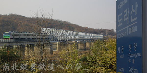 朝鮮半島北緯38度線付近の住民移動制限区域のDMZ観光。自由に行き来できる臨津閣から移動制限区域へ列車が向かう。南北が自由に行き来できる日と釜山から陸路で中国/ロシアへ行くことができる日を願ってやまない。