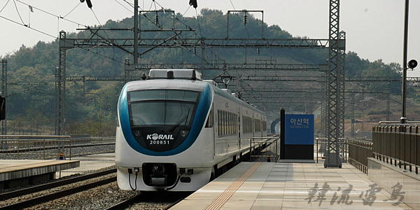 韓国にサンダーバード型の日立製ヌリロ号が誕生。牙山駅で乗車を待つ。韓国の鉄道規格に合わせた大型の車両が入ってきた。150km/hまで出るようだが、大半の区間がのろのろ運転。次第にムグンファに変わって韓国全土に広がることだろう。