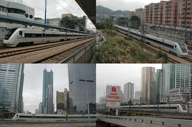 ↓(左)斜め上から(東莞〜樟木頭)、(右)681サンダーバード似で有名(広州東)