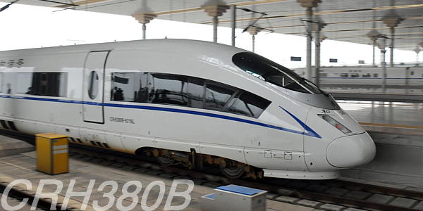 ↓(左)16両の長編成(南京南)、(右)杭州東駅に到着するCRH380BL、CRH3と異なりライト横の通風孔や連結カバーの操作バーがない。