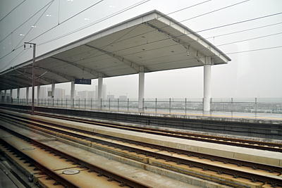 高架線の相対式ホームと通過線の2面4線。台湾高鐵の新竹駅のように、逆三角形の屋根が入口まで繋がっている。詳細調査中