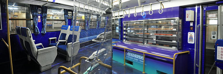 ↓左:初代0系のシートは記念撮影用エリア、右:新幹線などの模型を展示