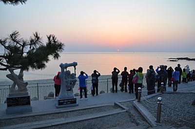 駅データベース韓国東海岸の日本海が眺められる駅。日本では日本海=夕日ですが、対岸の韓国では朝日を拝むことができます。2012年現在、海に一番近い駅としてギネスブックに登録されています。