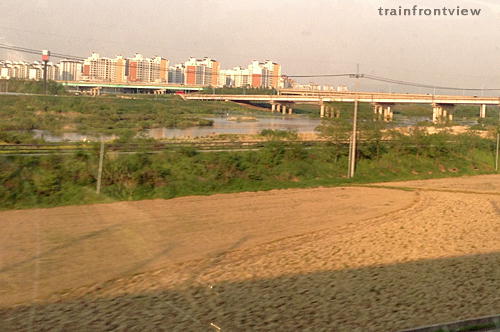 ↓(左)在来線共用区間を走るKTX(大田〜細川)、(右)巨大ドームの光明駅に到着