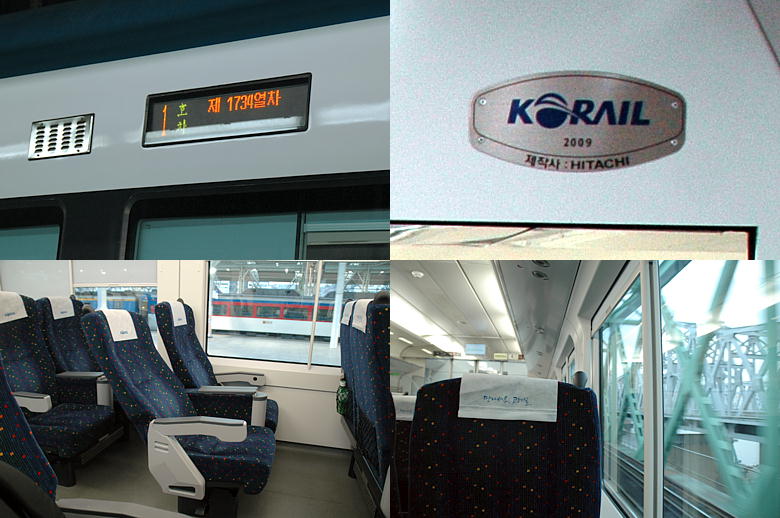 ↓(左)ソウル駅で発車待、(右)サンダーバード似のフロントビュー(九老)