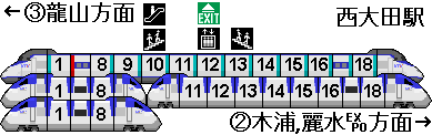 地上島式ホーム2面4線(他に側線有)の橋上駅。駅内には、食事/お土産店等が入っています。釜山方面のKTX京釜線は西大田駅手前で木浦方面と分岐するため、西大田駅は経由せず、西大田駅から5.7km離れた京釜線大田駅に停車します。