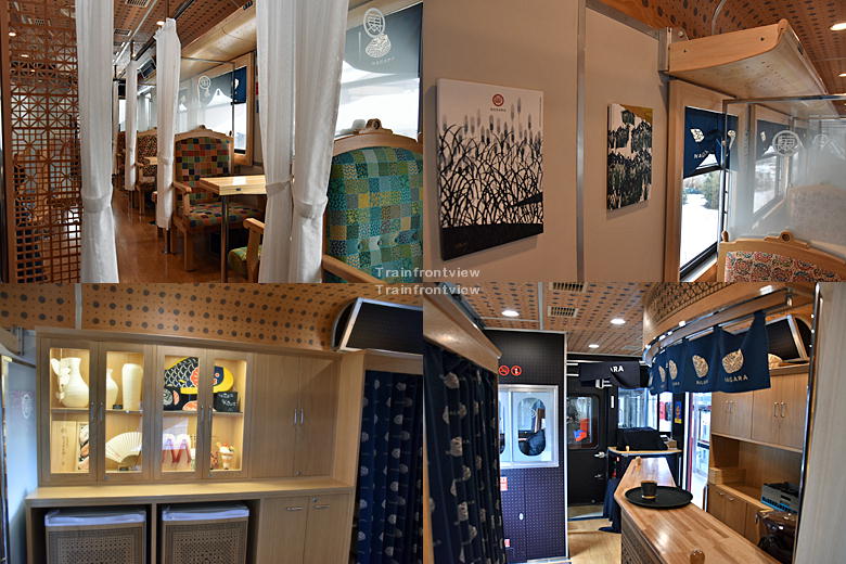 (左)1号車が乗車プランの「森」号、(右)2号車はお食事プランの「鮎」号