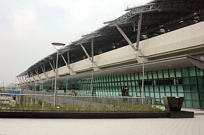 台湾第3の都市台中の高鐵駅。既存の台鐵(在来線)台中駅は台北方面へ2駅目。高架式で駅舎は機織り機をイメージ。高鐵/台鐵の乗換駅ではあるが、在来線は新烏日駅となっている。