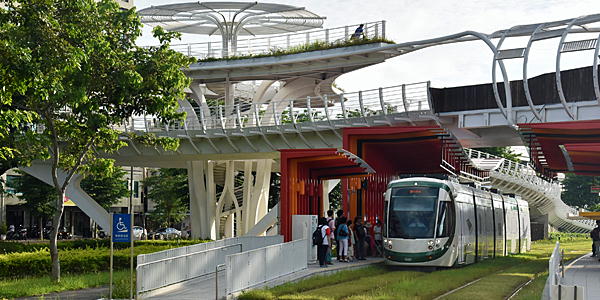 スペインCAF社の架線レストラムを採用した台湾高雄のLRV。停車中にパンタを上げて充電するため、乗車中は普通のLRVの感覚です。緑化軌道で架線がないため、風景もより美しく見えます。一度の延伸、15分間隔運転化など半年以上試験運行での無料乗車ができているのもありがたいです。地下鉄は初乗り20元に対し、LRVは30元均一になる模様です。ICリーダーにタッチしたところ、ipassは−0元の引き落とし表示でした。地下鉄では利用できる悠遊カードはエラーではじかれました。